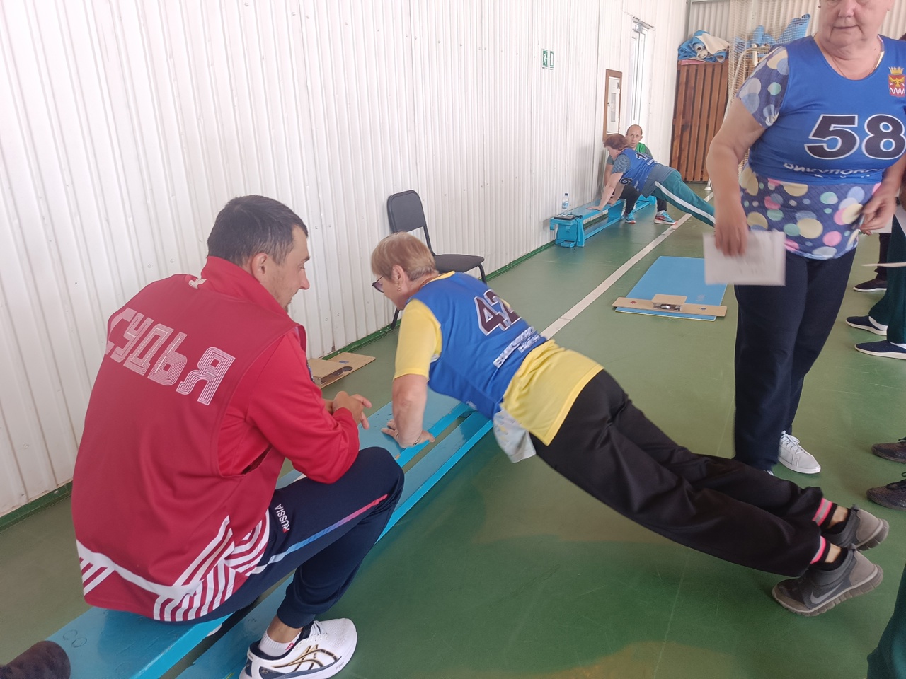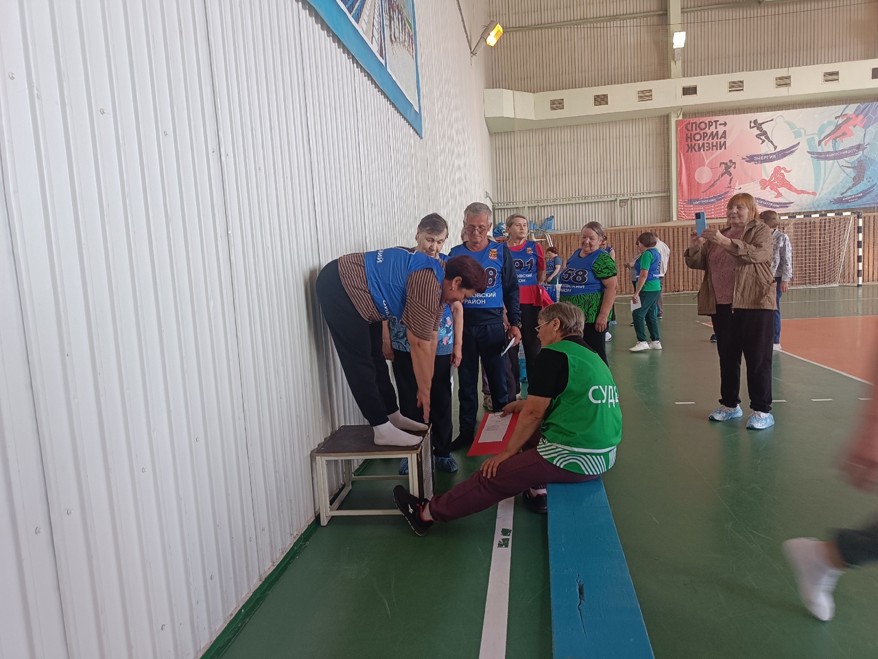 Участники в возрасте от 55 лет и старше проходили тестовые испытания по разнообразным спортивным направлениям – сгибание и разгибание рук в упоре лежа на полу, сгибание и разгибание рук в упоре о гимнастическую скамью, сгибание и разгибание рук в упоре о сиденье стула, поднимание туловища из положения лежа на спине, наклон вперед из положения стоя ногами на полу на гимнастической скамье, смешанное передвижение на 1000 м., бег на 1000 м.